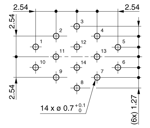 PK - Fixed receptacle with two nuts (back panel mounting), 90° print contacts